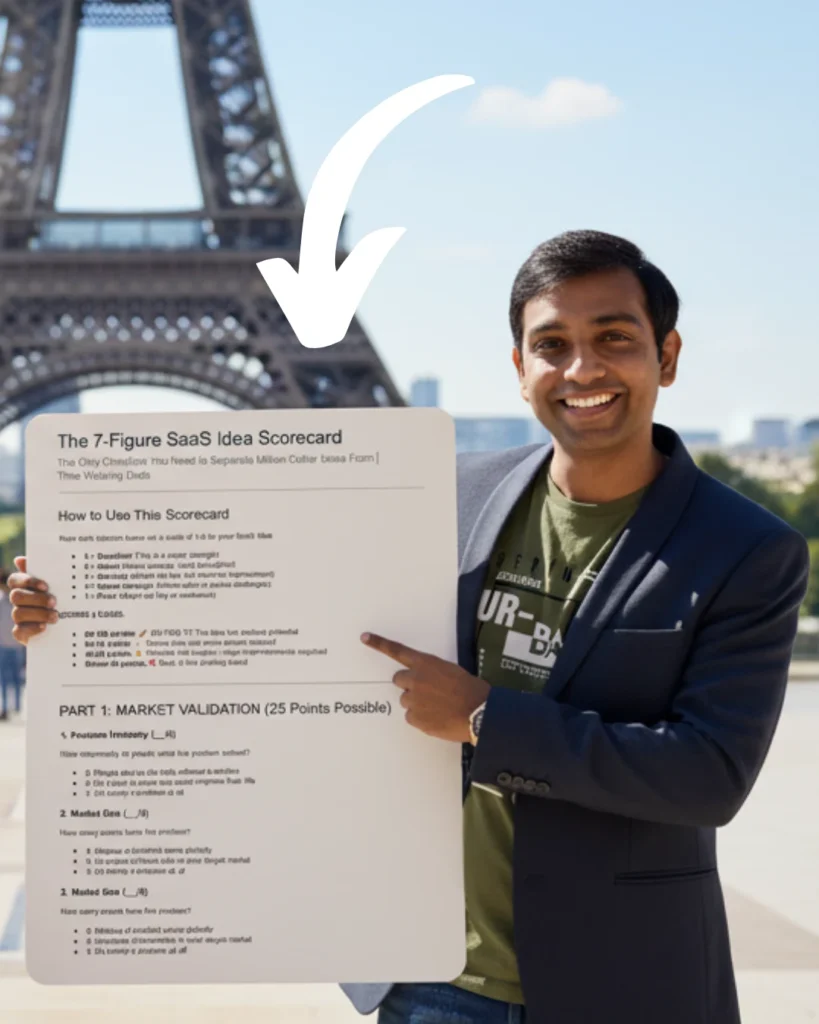 Enter your best email below and I’ll send you the 7 figure SaaS Idea Scorecard pdf so you’ll have it forever in your inbox.